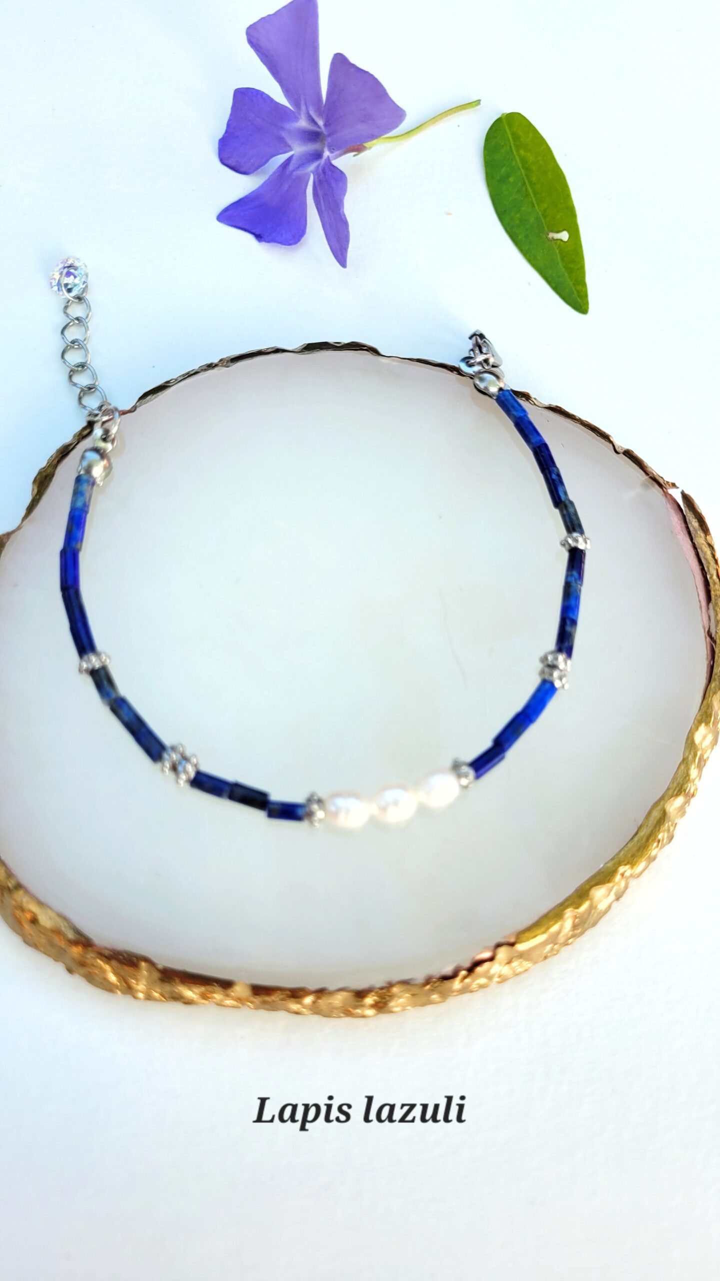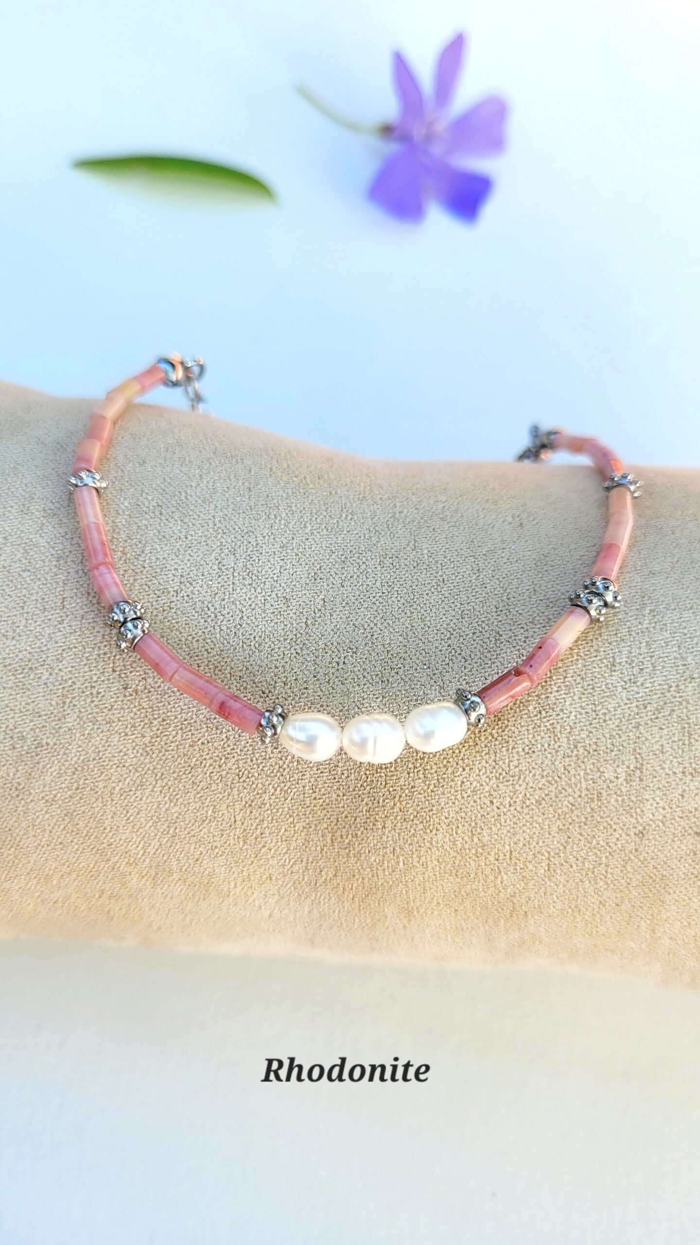 Bracelet en pierres naturelles et perles d’eau douce, au design fin. Une touche élégante qui habille le poignet en toute simplicité.