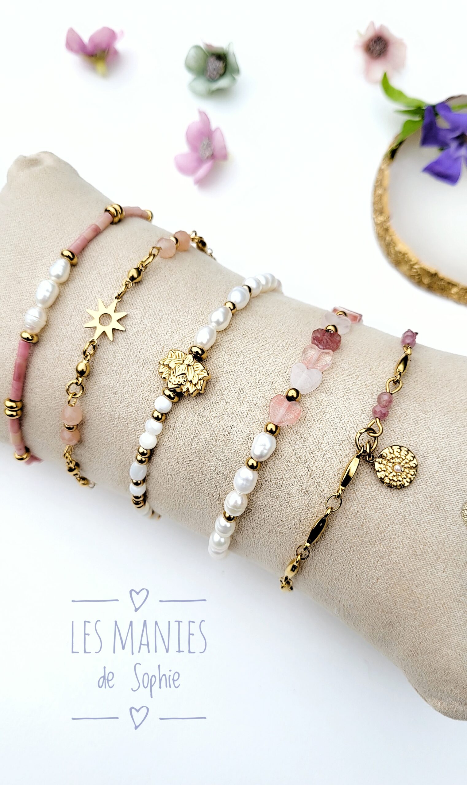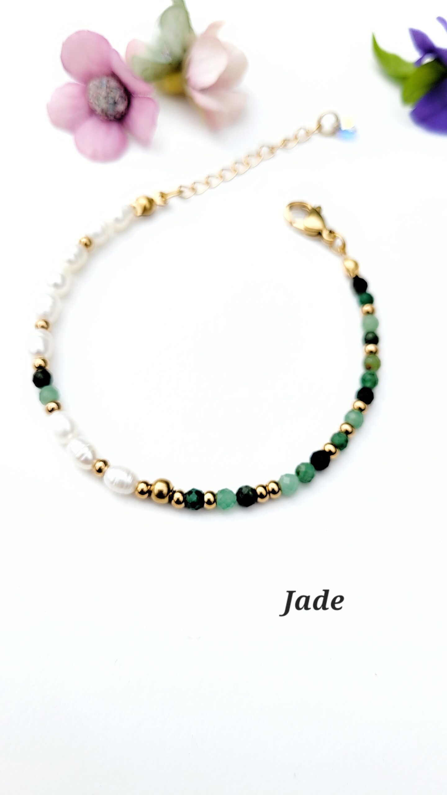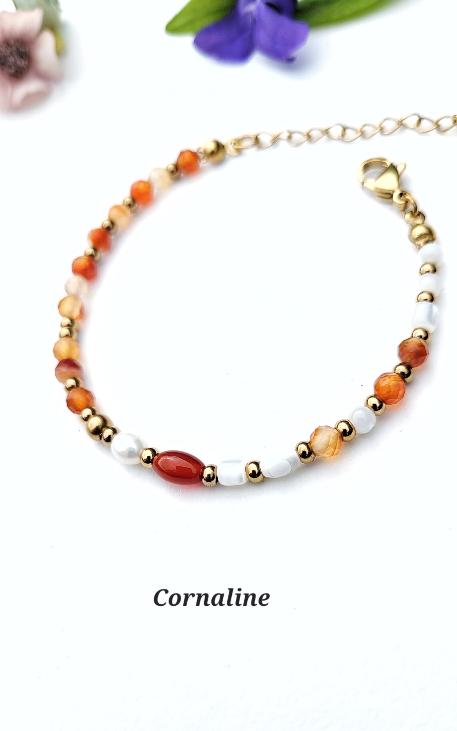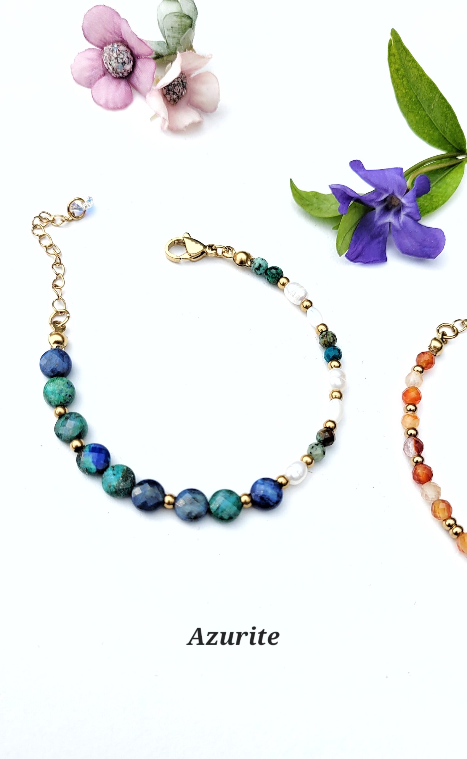 | Pierres naturelles | Cornaline, Jade, Jaspe, Perle d'eau douce, Quartz, Azurite, Cyanite |