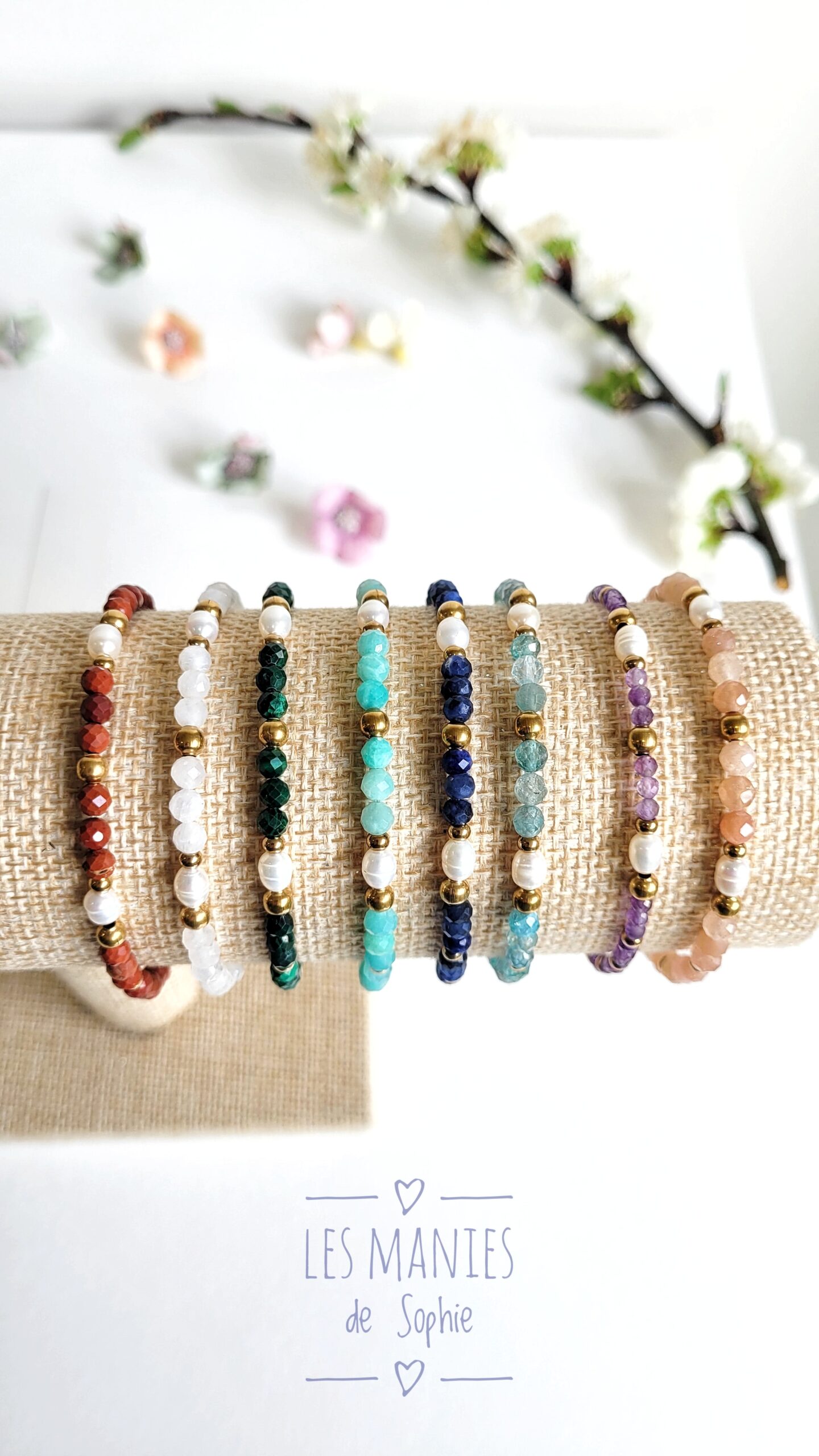 Sublimez votre poignet avec ce ravissant bracelet réalisé à partir de pierres naturelles et perles d’eau douce.